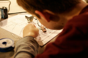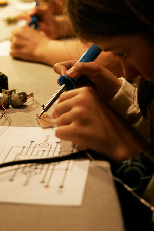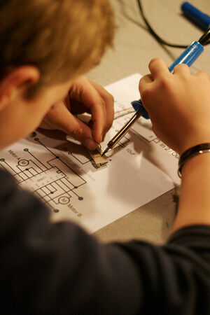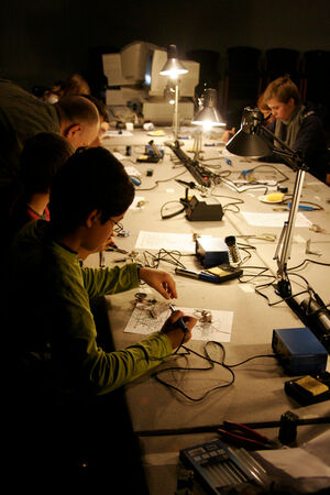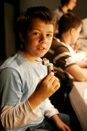 In diesem zweitägigen Workshop für Mädchen und Jungen, unter der Leitung des Berliner Medienkünstlers Karl Heinz Jeron, steigst Du in die Robotertechnik ein und kreierst Deine selbst programmierte kleine Maschine. Am ersten Tag wird gelötet, bevor am zweiten Tag der Computer zum Einsatz kommt.