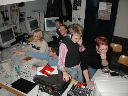 Der Medienaktivist und -gestalter Micz Flor bietet im Rahmen der Ausstellung "Kontrollfelder. Programmieren als künstlerische Praxis" einen Workshop für Jugendliche (15 - 20 Jahre) an, der sich der Musikproduktion und dem "DJ-ing" mit dem Computer widmet. Mit den Mitteln des Linux-Betriebssystems und freier Software werden Songs und Playlisten generiert, gemischt und für das Online-Übertragen mit einem Internet-Radio-Programm aufbereitet.