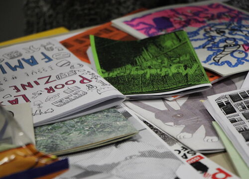 Gestaltung eines selbstgebastelten Handbuchs zum Thema digitale Selbstverteidigung.